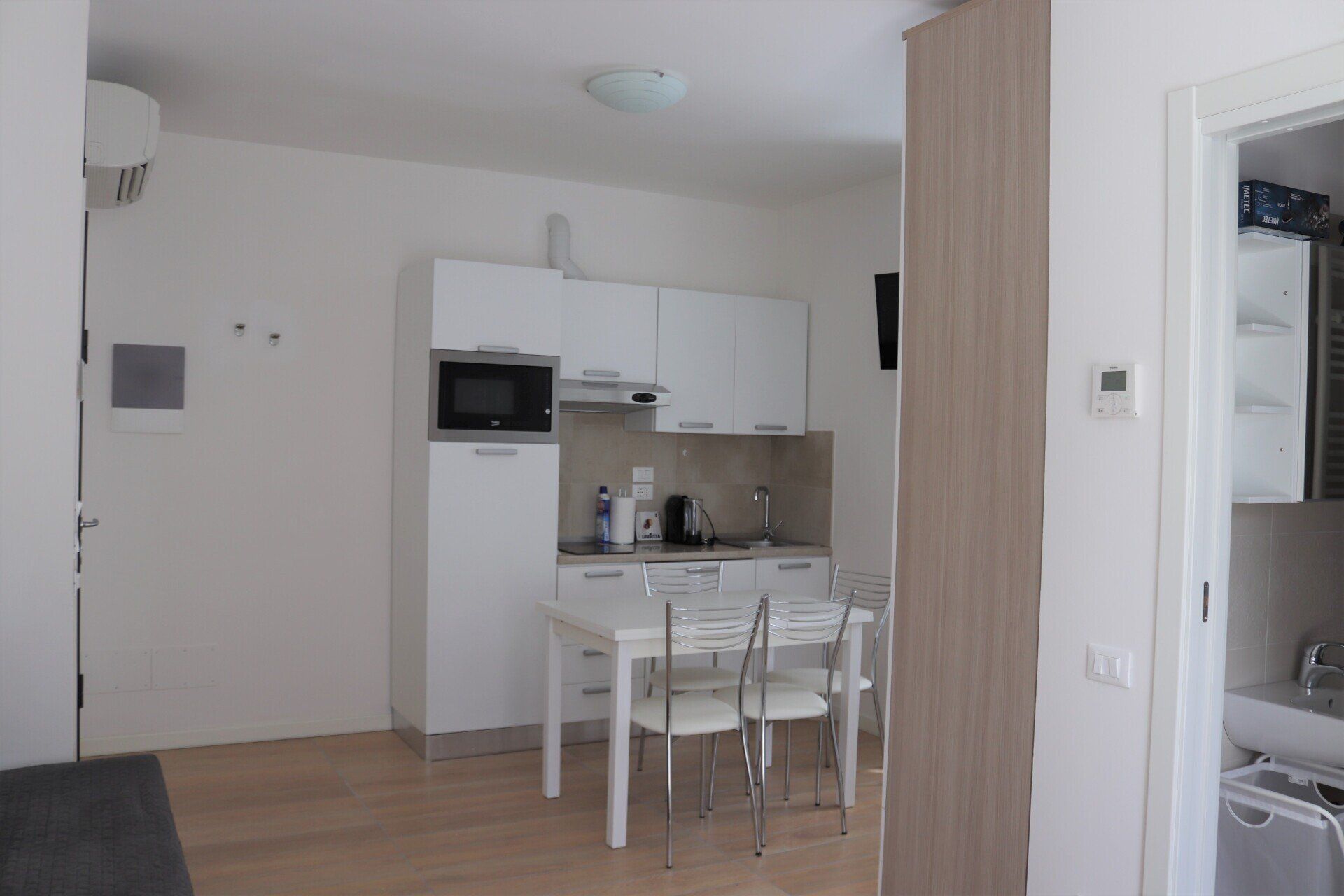 - Elettrodomestici e arredi: piano cottura, lavastoviglie, divano, TV a schermo piatto, lavatrice, bidet e asciugacapelli, microonde, frigorifero, macchina da caffè;